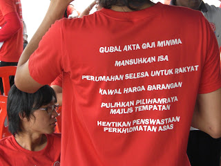 Yang pertama – Gubal Akta Gaji Minima. Kedua – Mansuhkan ISA. Ketiga – Perumahan Selesa Untuk Rakyat. Keempat – Kawal Harga Barangan. Kelima – Pulihkan Pilihanraya Majlis Tempatan. Keenam – Hentikan Penswastaan Perkhidmatan Asas.